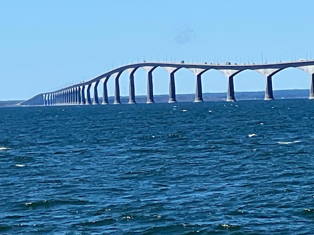Our route to Charlottetown took us under the Confederation Bridge, which spans the Northumberland Strait and links PEI to the mainland of New Brunswick. Spanning over 8 miles, it is the longest bridge IN THE WORLD over ice-covered water! Taking 4 years to build at a cost of $840 million (in 1993 dollars), the bridge opened in 1997. The deepest of the 44 piers rests on the ocean floor 115 feet beneath the surface. While it takes just 10 minutes to drive across, the toll for a passenger car is a $50.25!