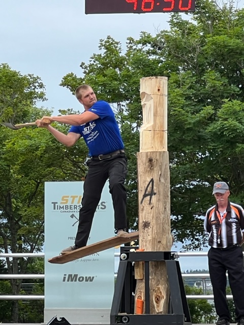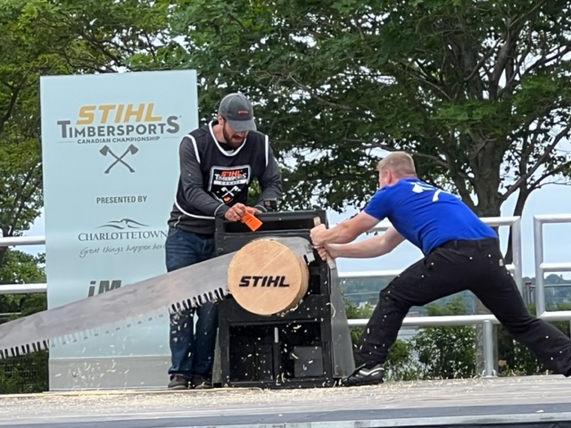While in Charlottetown, we were fortunate that the Canadian competition for the STIHL TIMBERSPORTS World Championship took place here during our visit. Events included cutting timber in various configurations with an ax and with a long, steel saw. It seems there is an entire culture built around these events, and the participants are serious athletes, both men and women, who train rigorously year round. The timing of the women’s competition conflicted with other plans, but here are a couple of images from the men’s events: