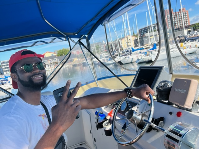 Kennedy tried her hand at driving the boat (securely tied to the dock…):