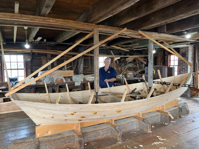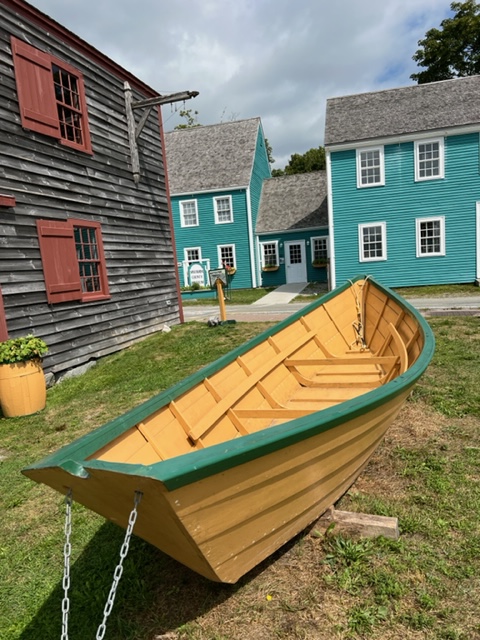 Notice the historic buildings behind the dory which is next to the museum –