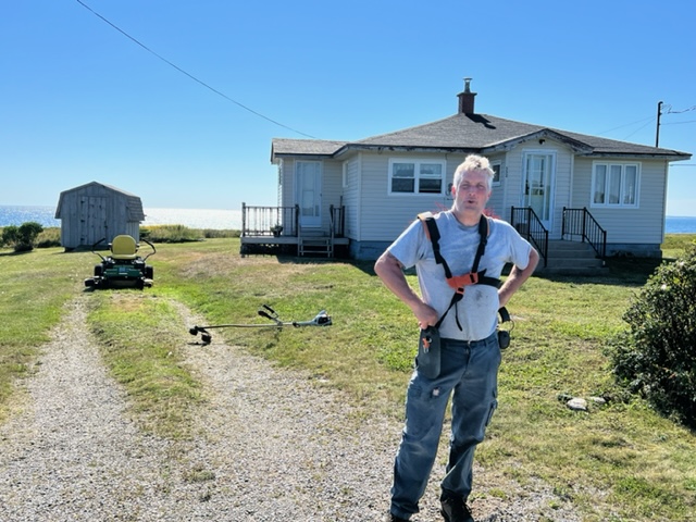 Another story about the amazing people of Nova Scotia and the Maritime provinces – so I was riding along on my bike passing a house in which a man was mowing the lawn on a riding mower. When he saw me, he stopped the mower, shut off the engine, and came out to the street to talk with me! He is a local lobster fisherman which he has been doing for 40 years, and we chatted for about 20 minutes, each learning a bit about each others’ lives. He also gave me some important advice about rounding volatile Cape Sable, which we intend to do in the next couple of days. Meet my new friend Bobby; notice his idle lawnmower in the background!: