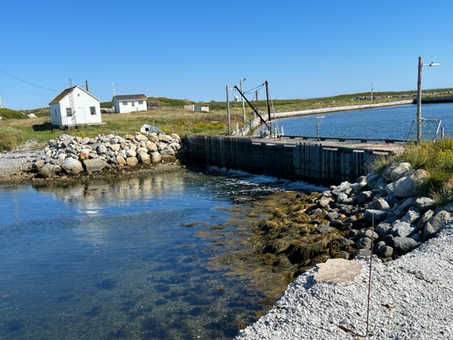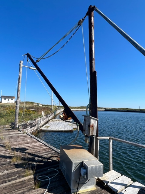 The harbor in Port La Tour is man-made with concrete wharfs and high rock breakwaters, and is purely a commercial fishing harbor. Every spot was filled with large fishing boats, so we rafted up to the “Rosemary & Gail” in a location that wouldn’t block any other fishing boat that might go out. Shortly after we tied up, the owner of the boat, Robert, and his son Mathew, happened to show up. They welcomed us to Port La Tour, and welcomed us to stay tied to their boat as well. We had a 20 minute chat, but I must confess that both Jim and I could only decipher about every third word due to their thick, Nova Scotia fishermen’s accent! So we nodded and smiled alot….
