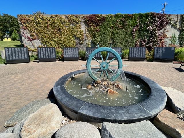 Exploring town, I came upon this Fishermen’s Memorial, honoring fishermen who have died at sea while fishing. Virtually every town we’ve passed through since Quebec City has a fishermen’s memorial of some sort, but this one was different – notice the seven black stone markers engraved with names – there are over 2,500 names inscribed in the memorial!
