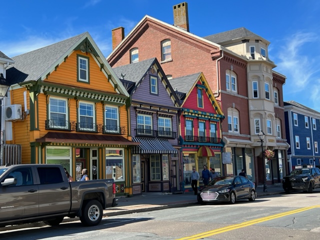 The first European visitor to Yarmouth was Samuel de Champlain in 1604. It quickly became an important fishing port, and its heritage is displayed in the array of well-preserved homes from its heydey. Today, Yarmouth is a down-to-earth, working-class fishing and industrial town that takes advantage of its strategic location. The waterfront is a gritty, no-nonsense working harbor. However, one street up from the waterfront is a surprisingly long and varied Main Street that boasts a varied selection of shops and working establishments – not tourist boutique-type shops, but well-kept shops that support the working-class residents of the region, with some restaurants, breweries, and the like mixed in throughout restored, historic buildings. Here is an image from along Main Street:
