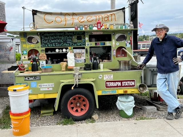 Interestingly, Belfast has a bit of an artsy, hippie-ish, earthy/crunchy feel to it, from the food co-op to the prevalent artwork to the ambiance of some of the shops and small businesses and kiosks. The “Coffeeman”, who did a brisk business, is a good example: