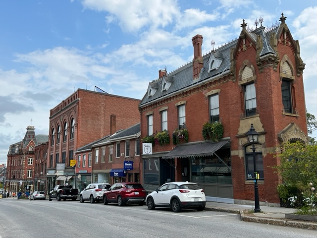 Belfast is located on Penobscot Bay, along with the famous tourist destinations of Camden, Rockport, and Rockland. It’s the furthest inland of the four communities, located at the end of the bay. The city doesn’t possess the fame and cache of the other three towns, but it has an abundance of restaurants, pubs, and other tourist shops. The downtown area was active and vibrant on a Sunday afternoon, with a festive atmosphere. Here are a couple of images of the streetscape with many historic buildings: