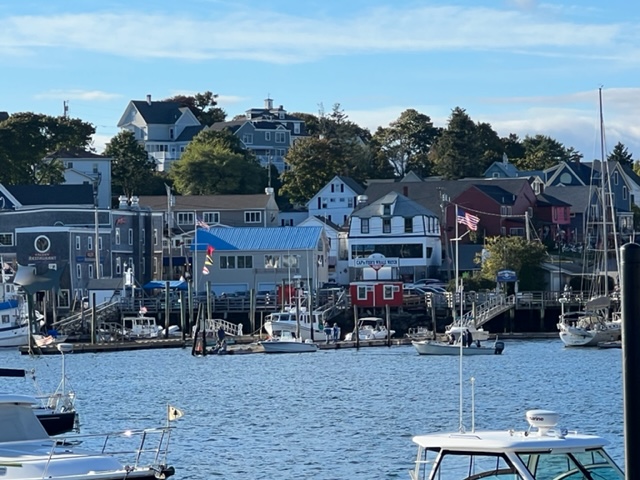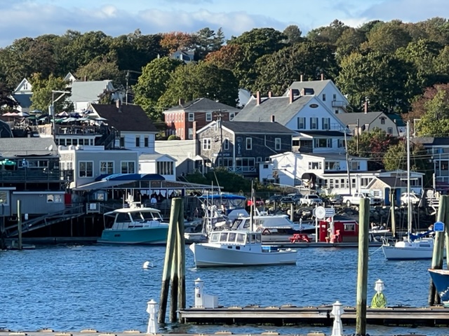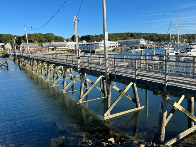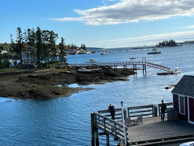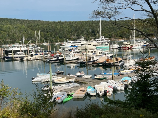 Knowing that Hurricane Fiona was on its way north and would impact the waters in Maine, I called ahead to arrange a secure and protected place to dock in the inner harbor at Boothbay. Here we are, just about as far into the harbor as one can get – for those familiar with Boothbay Harbor, we’re docked just short of the footbridge, from which this picture was taken:
