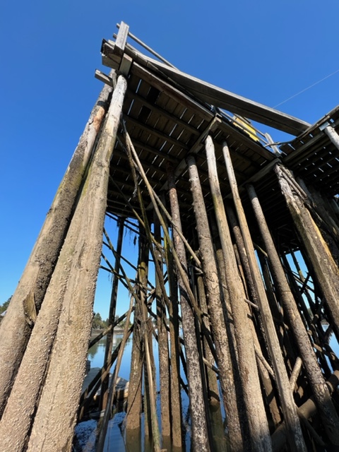 He explained that the herring were processed whole, exactly as they arrived from the boat. The first step was to “brine” the fish for a week or so – the “brining” process meant soaking the fish in a saline solution in vats for the week-long period. When removed from the brining solution, the herring were then strung by hand, one fish at a time, on wooden sticks, which were then hung in the smokehouse. When the smokehouse was filled with thousands of herring hung on the sticks, the workers would start a fire on the gravel floor of the wooden smokehouse (yes, a fire on the floor of the WOODEN smokehouse!). Once the fire built up, they would put sawdust on it to create smoke; the workers would then keep the fire going round the clock for TWO MONTHS in the wooden smokehouse to cure and smoke the herring! After two months, they would take the herring down, remove them from the sticks, and the workers would then remove the guts and strip the skin by hand from each fish. The final step in the process was to pack the smoked, skinless filets by hand into ten-pound wooden boxes for shipment throughout the world.