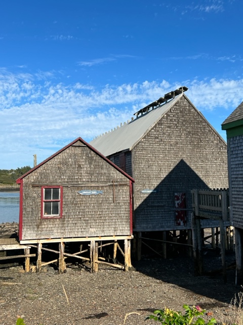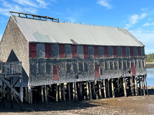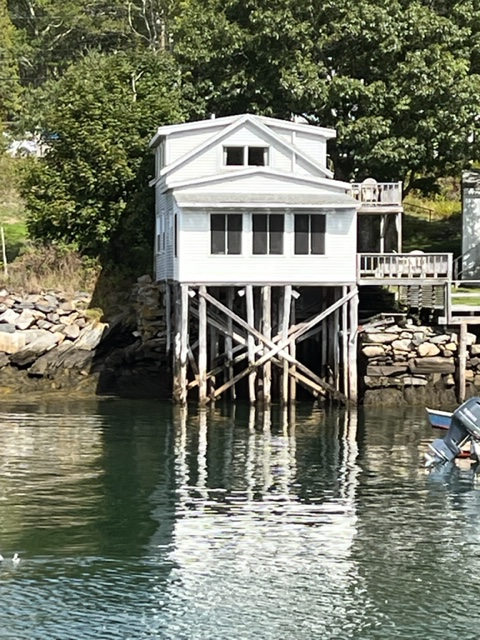 When the strong winds finally subsided, we headed for our next destination, Buck’s Harbor, about 25 nautical miles down the coast. On our way out of Northeast Harbor, we passed this interesting building, built out over the water: