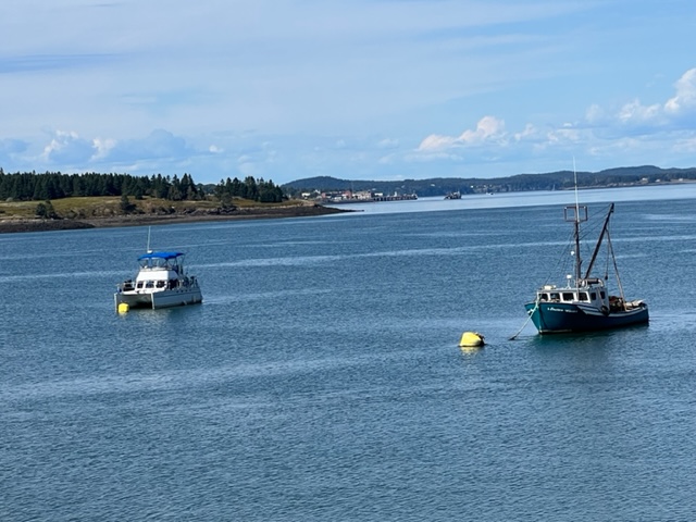 Lubec sits directly on the Canadian border at Campobello Island, so there is a US Customs office at the bridge to the island. As required, we brought our passports and boat documents to the office and cleared entry of us and the Joint Adventure back into the USA!