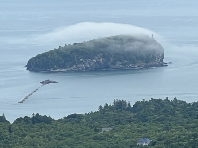 Bob had to leave us, so we went first to Bar Harbor where we dropped him off to get a ride back to his car in Lubec. On our way around the east coast of Mt. Desert Island, we passed Cadillac Mountain, the highest peak on the Eastern seaboard of the United States; from October 7 until March 6, it’s the first place in the US to see the sunrise: