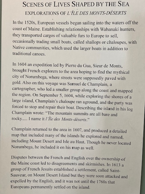 Two things in particular caught my attention at the museum. The first is this historic plaque with some information about the history of Mt. Desert Island: