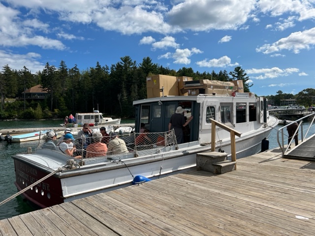 Notice the furniture in boxes tied to the top of the Mailboat, which was delivering them to Cranberry Island (along with the mail, presumably):