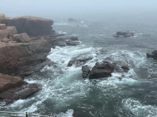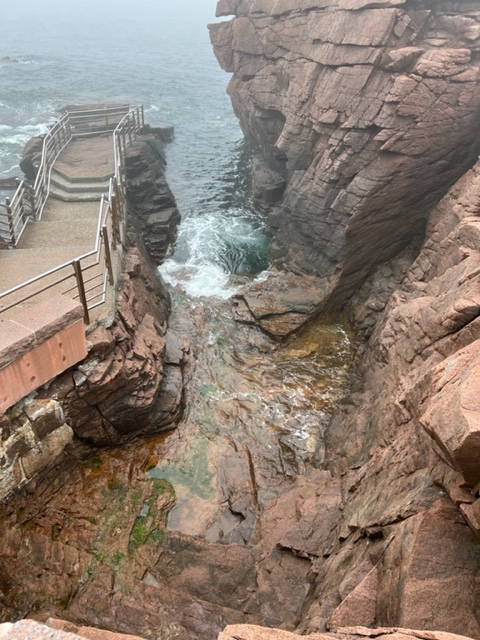 And a visit to Acadia wouldn’t be complete without a visit to Thunder Hole. The rock formations are such that, near high tide, waves wash into the hole and get trapped, causing geysers to shoot into the air and creating loud thunder-like sounds as trapped air is compressed and rushes to escape. I was actually there at low tide so I don’t have pictures of Thunder Hole “performing”, but the rock formations are still quite compelling: