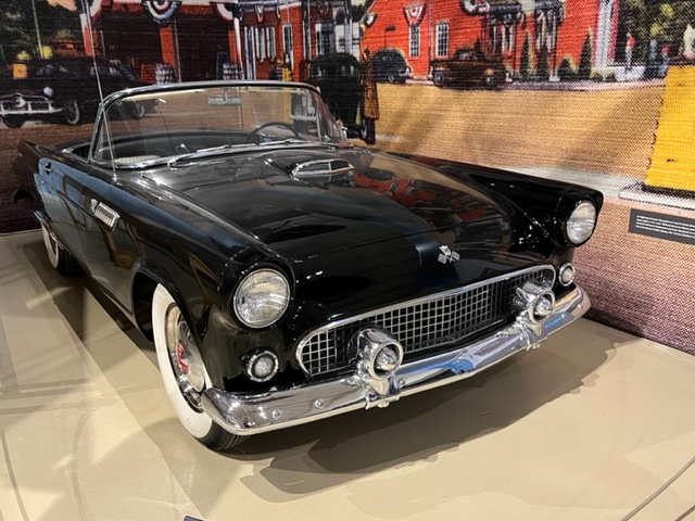 For vintage sports car buffs, here are pictures of an early Ford Thunderbird and an early Chevrolet Corvette, followed by a plaque on three panels that provides a short insight into the inter-relationship of these two classic sports cars: