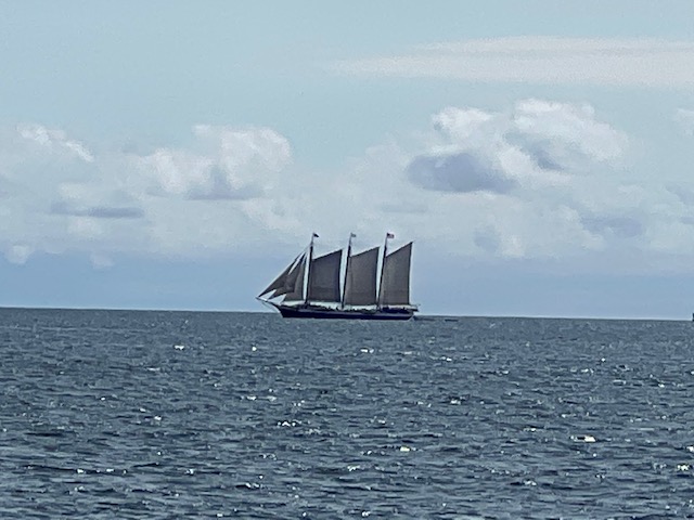 As we approached the Camden/Rockport/Rockland end of Penobscot Bay, we encountered a half dozen large schooners that take visitors out for a day-sails, based in each of the three towns. They are a majestic sight to see, gliding along the waves: